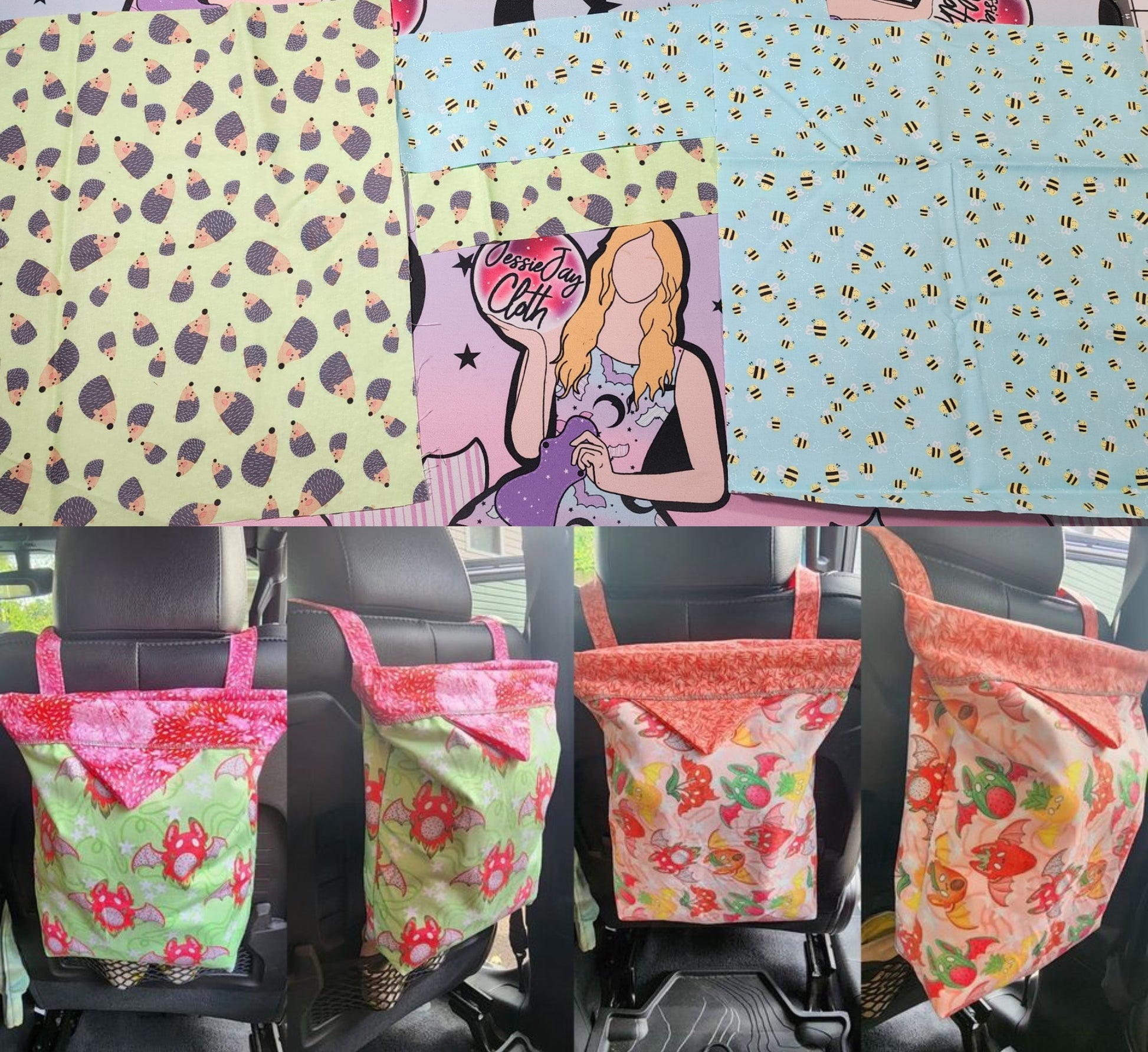 Introducing the Mess-Proof Trash Tamer; A Trash Can for your car, the perfect solution for keeping your car clean and tidy, even with kids or pets in the back seat!