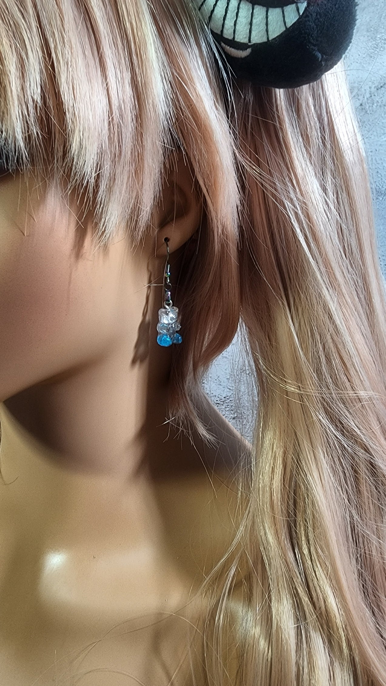 Ombre Glitter Gummy Bear Earrings | Rainbow Dangles | Blue & Clear