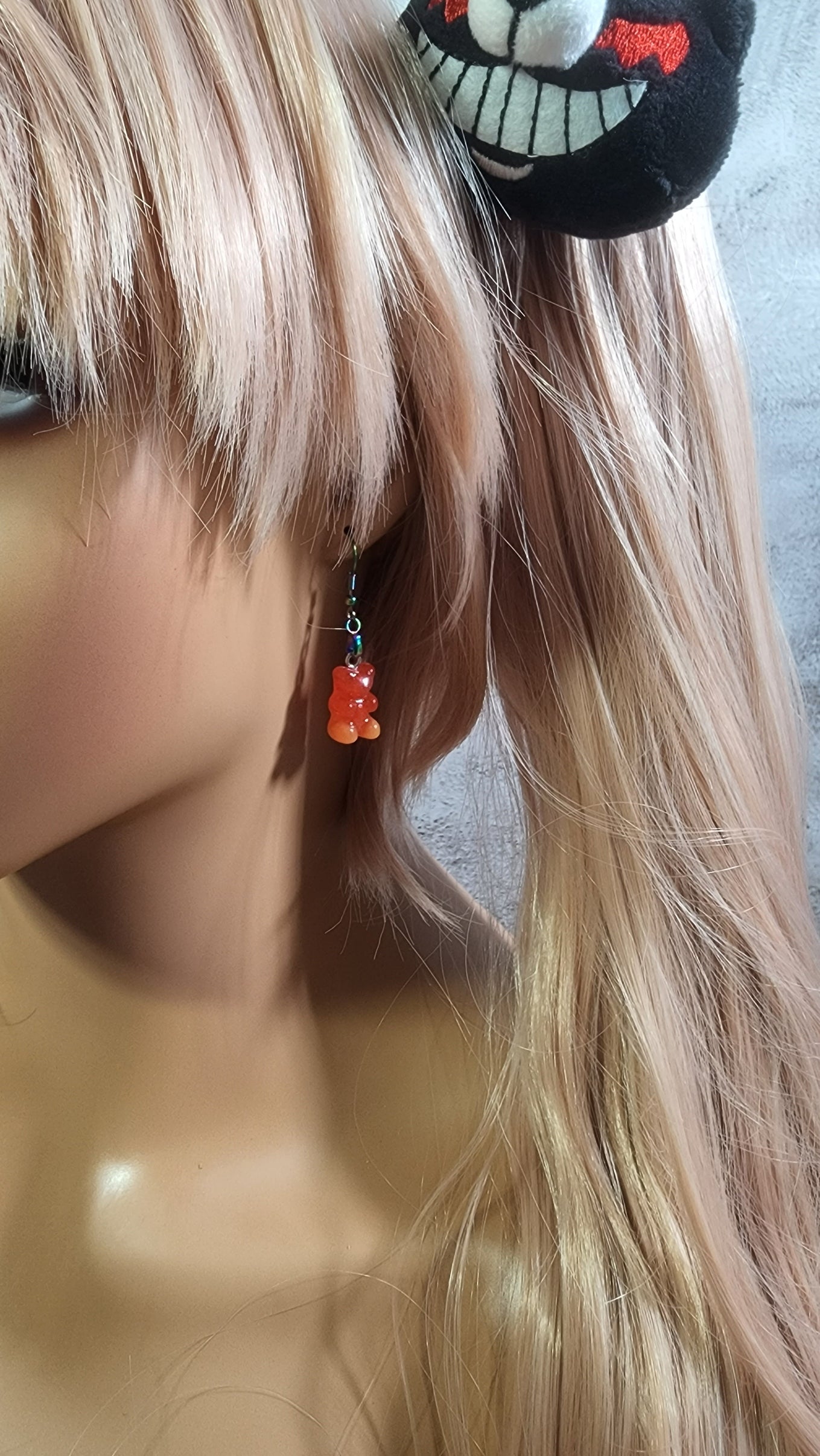 Ombre Glitter Gummy Bear Earrings | Rainbow Dangles | Red & Orange