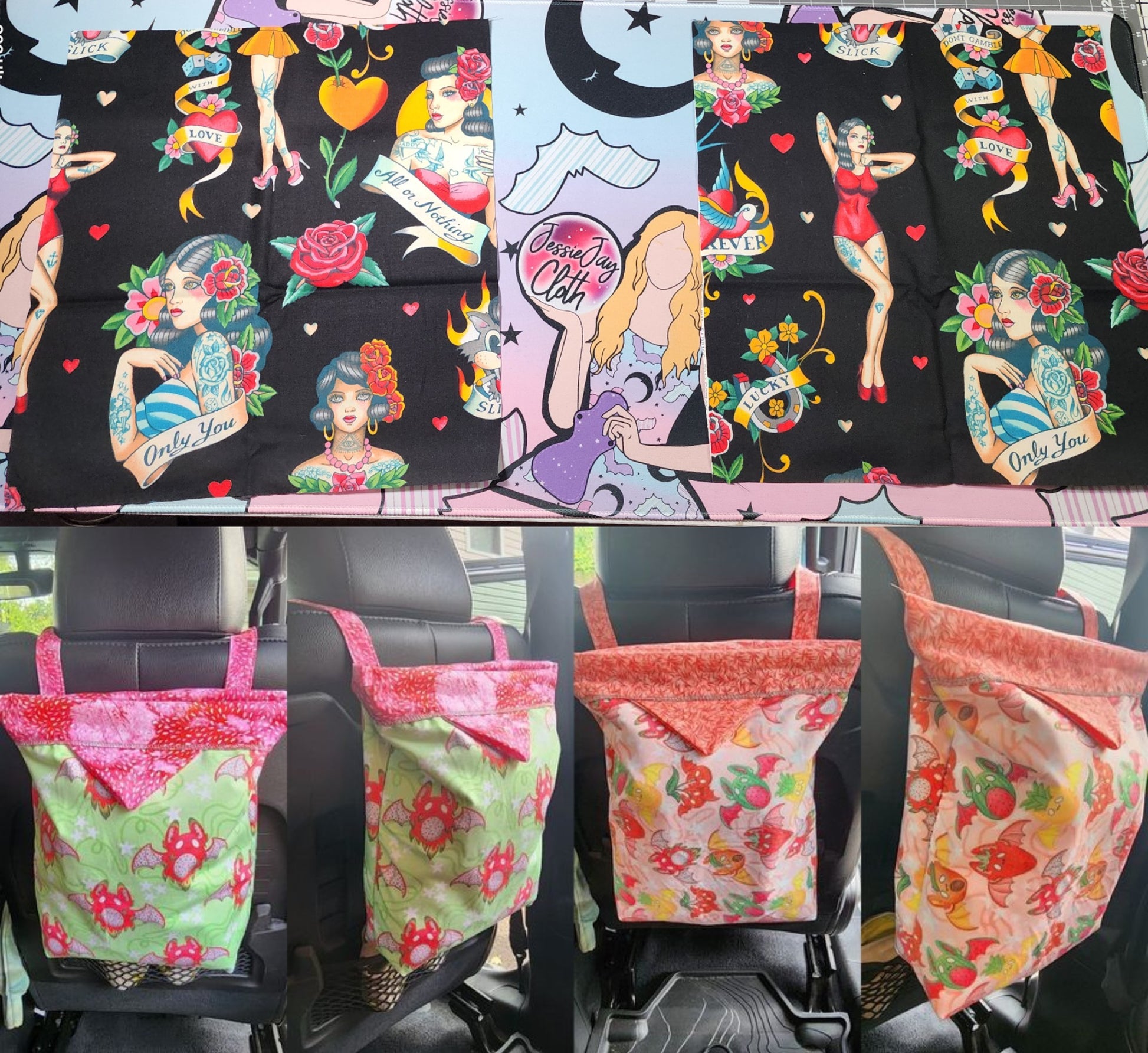Introducing the Mess-Proof Trash Tamer; A Trash Can for your car, the perfect solution for keeping your car clean and tidy, even with kids or pets in the back seat!