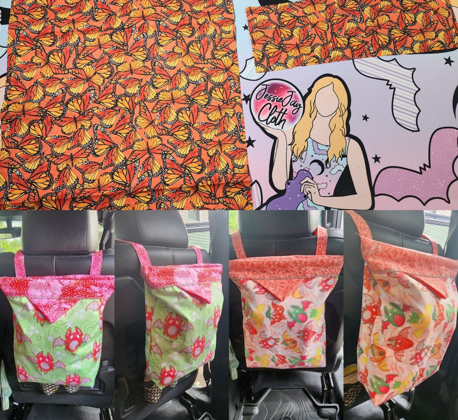 Introducing the Mess-Proof Trash Tamer; A Trash Can for your car, the perfect solution for keeping your car clean and tidy, even with kids or pets in the back seat!