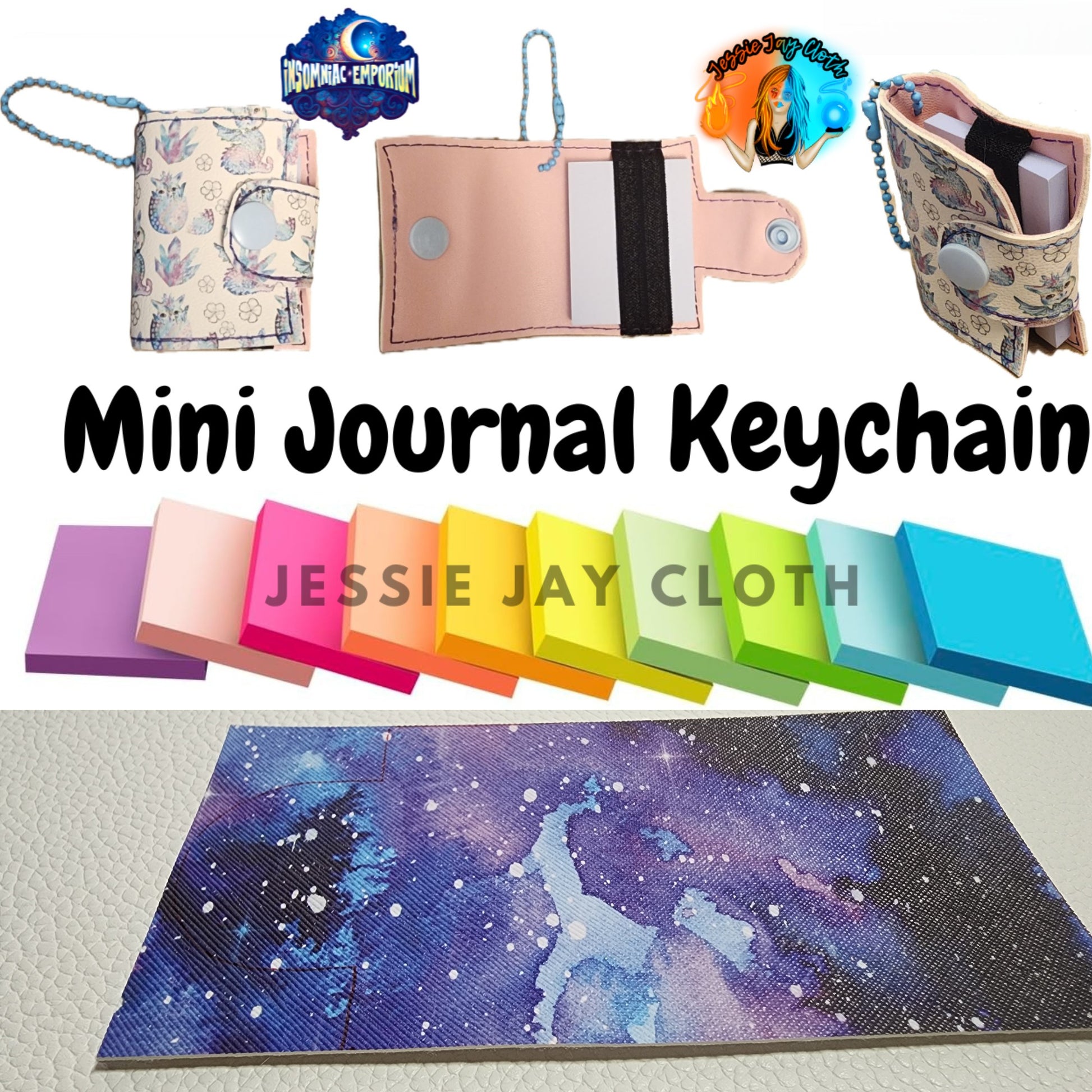 Reusable Mini Journal Keychain + Pen + Cord holder organizer + 50 sticky notes