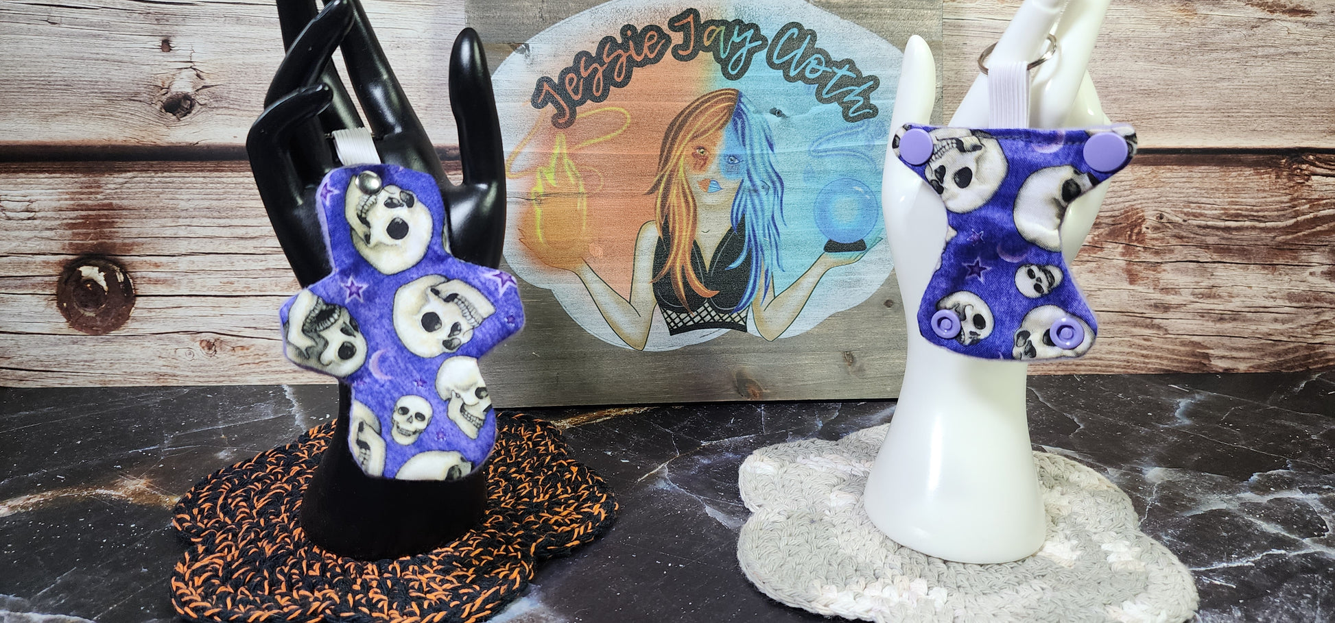 Spooky Purple Skulls Cloth Diaper & Cloth Pad Keychain | Set or Singles
