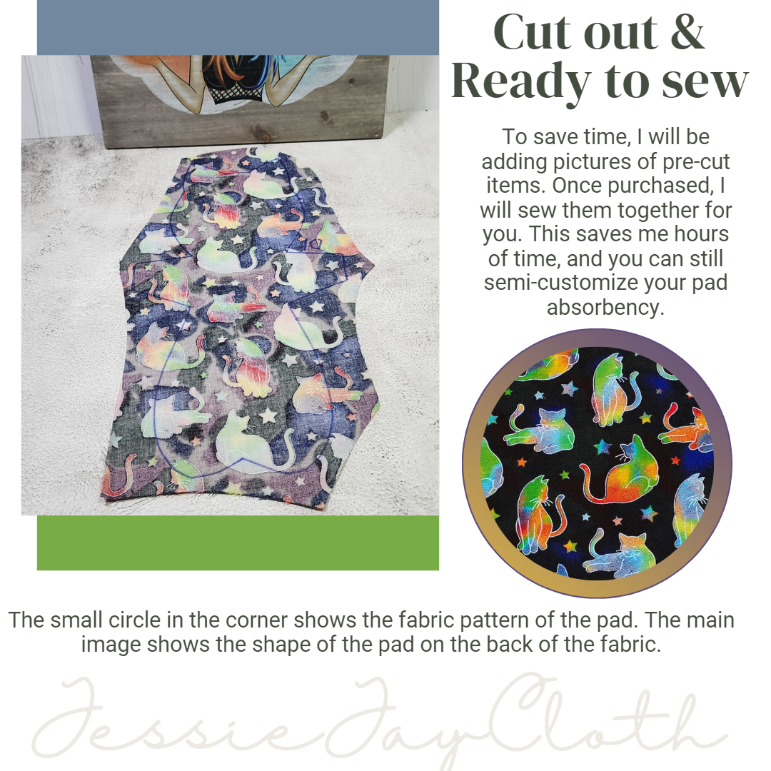 10 inch Kitty Cat, Rainbow Tie Dye Cats | Cloth Pad or Liner | Choose your absorbency