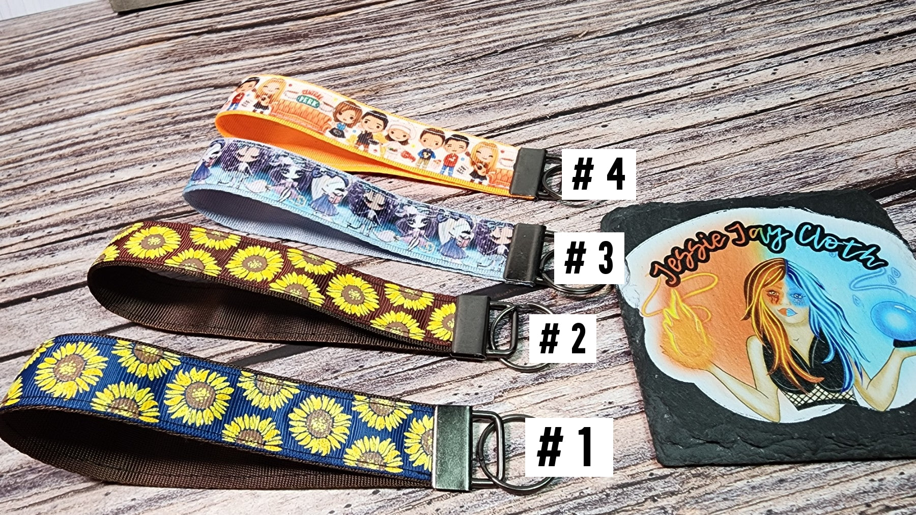 Sunflower, Friends, Dolls Wristlet Key Fob | Ribbon/Nylon Fabric Keychain | Choose your print