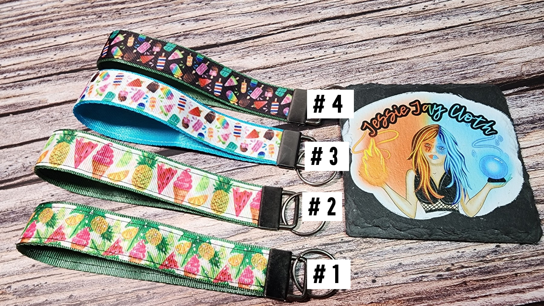 Summer, Ice cream, Popsicle, Pineapple Wristlet Key Fob | Ribbon/Nylon Fabric Keychain | Choose your print