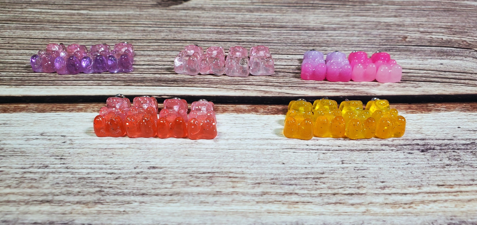 Gummy Bear Inspired Dangle/Stud Earrings OR Keychain | Gradient Glitter Resin | Hypoallergenic | Candy Earrings | 15 colors to choose from
