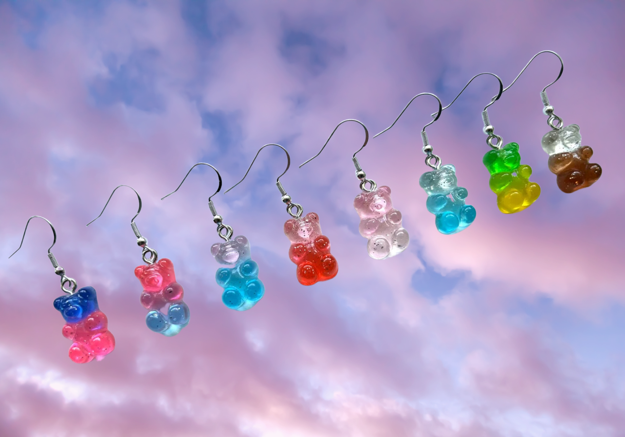 🖤 These not so chewy gummy bears make for the yummiest addition to any outfit. Available in 15 different colors, buy one or collect them all! Careful though, these little guys are sure to chip a tooth because they are NOT EDIBLE.