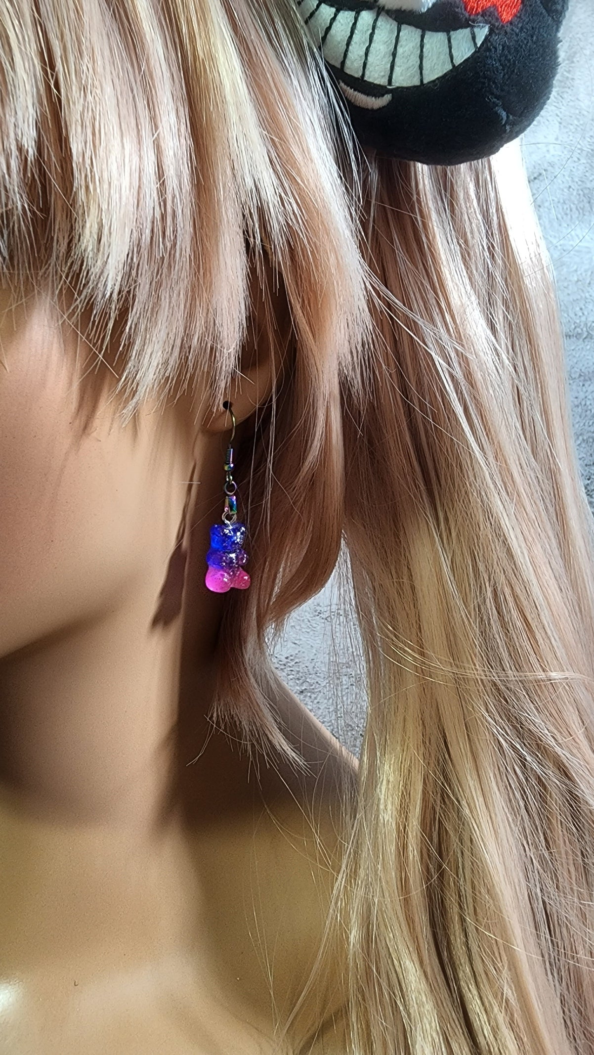 Ombre Glitter Gummy Bear Earrings | Rainbow Dangles | Dark Blue & Pink