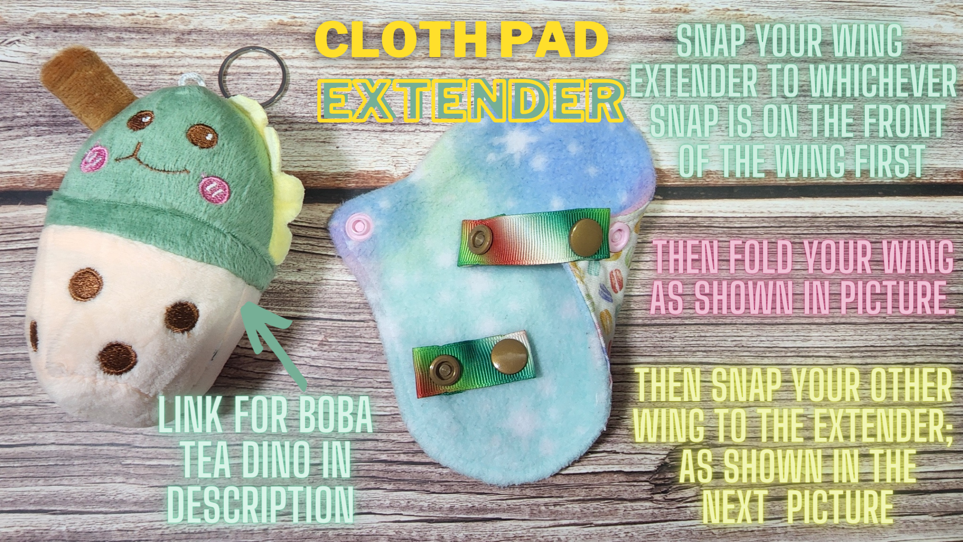 🔮 A handy addition to your cloth pad collection is this set of Cloth Pad extenders. Your gusset's snapped width will be increased by approximately one or two inches.